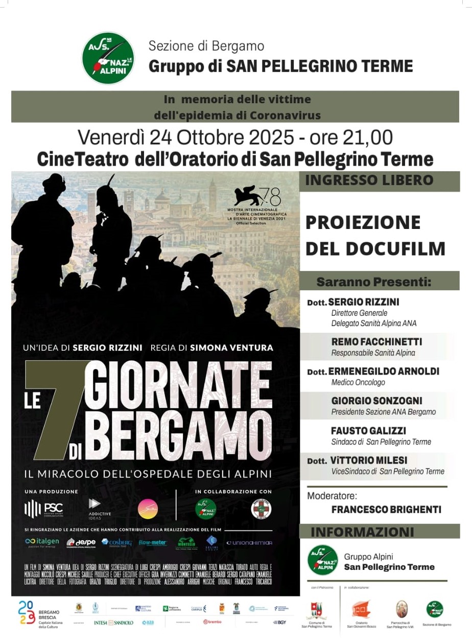 Proiezione del docufilm presso il CineTeatro dell'Oratorio di San Pellegrino Terme
